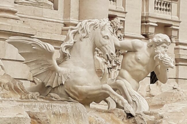 Pour illustrer la différence de relation qu’il peut exister entre l’humain et son cheval, j’ai voulu décortiquer et vous partager mon interprétation de la fontaine de Trévi, de Nicolas Salvi, œuvre sublime située à Rome, dont la beauté me subjugue et m’a permis de comprendre ceux qui glissent dans le syndrome de Stendhal face à une œuvre d’art !